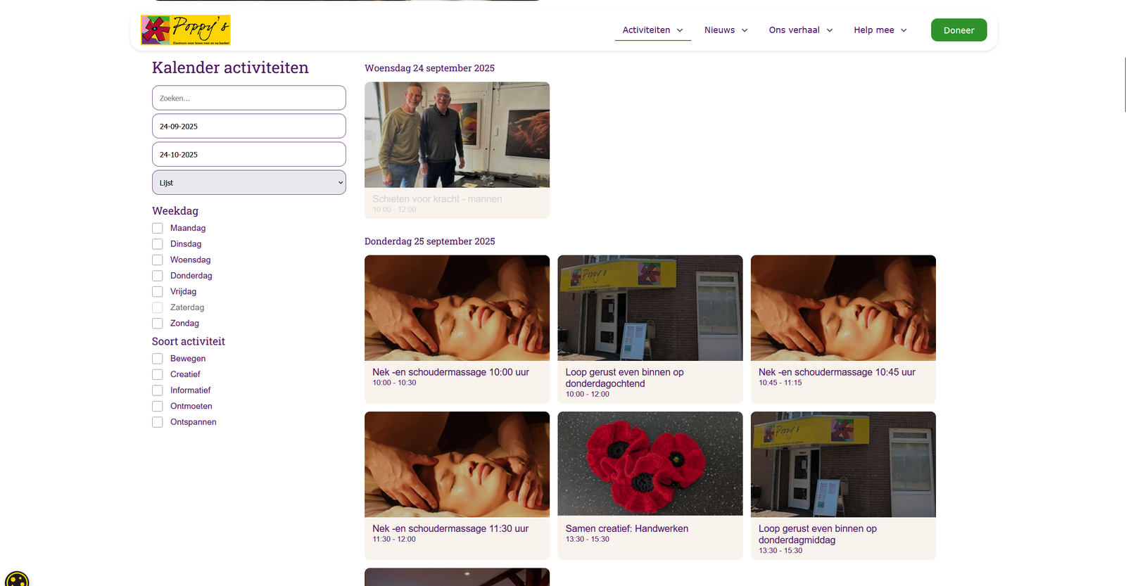 De website van Centrum Poppy’s is gemoderniseerd met een frisse uitstraling. Activiteiten zijn direct zichtbaar via de IPSO-koppeling en nieuws krijgt een prominente plek, waardoor bezoekers snel vinden wat ze zoeken.